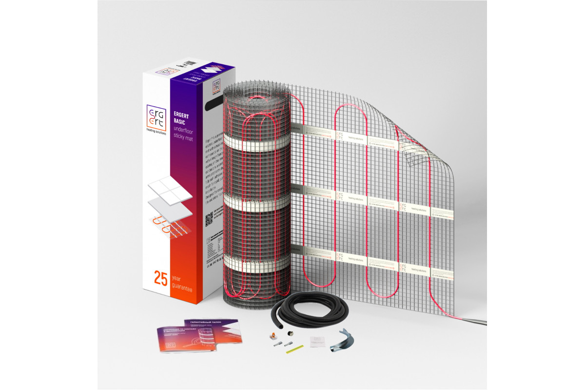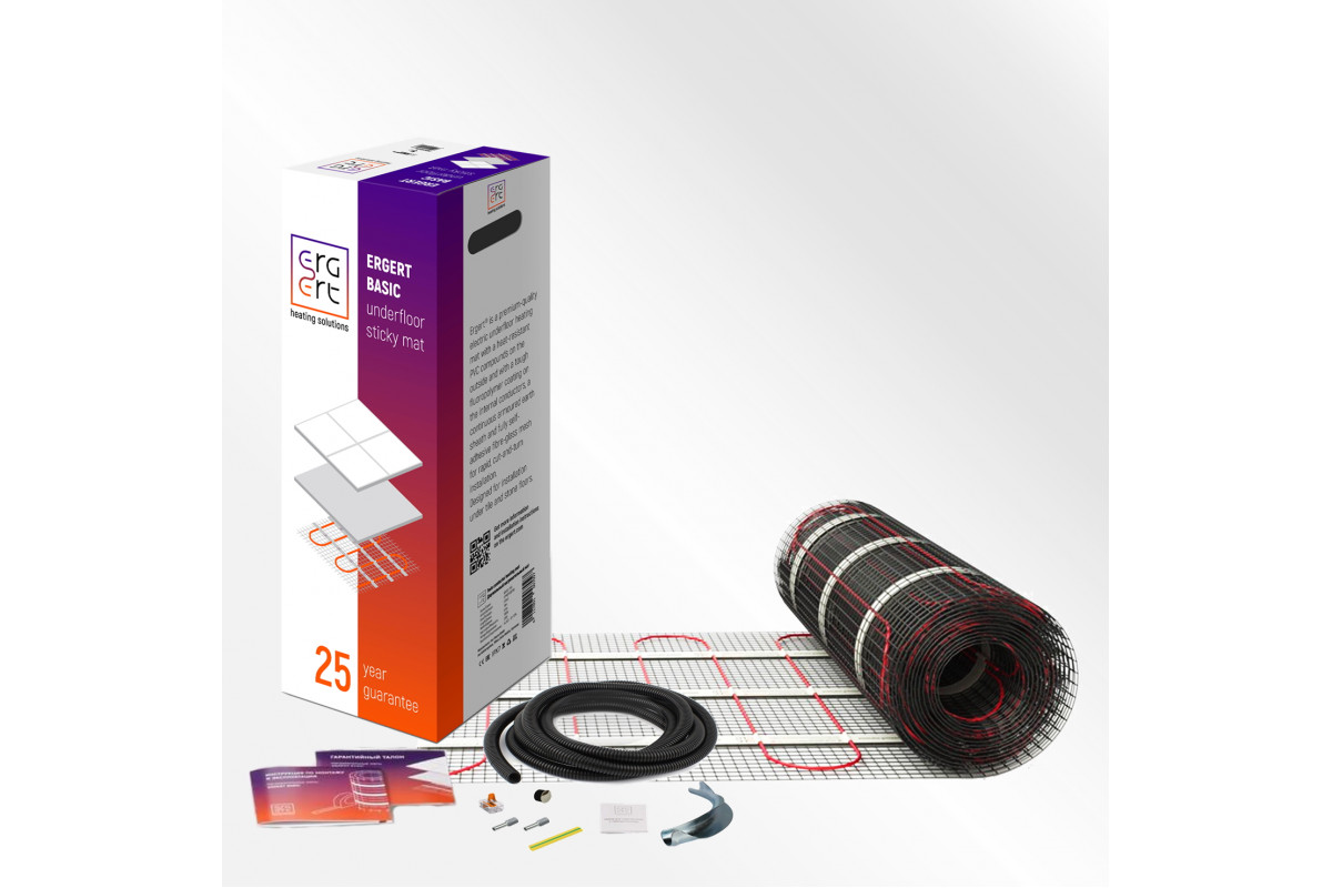 Нагревательный мат Ergert BASIC-150 225 Вт, 1,5 кв.м. – это эффективное решение для создания комфортного теплого пола под плитку.  Укладка под керамическую плитку или керамогранит делает его универсальным и удобным в использовании.