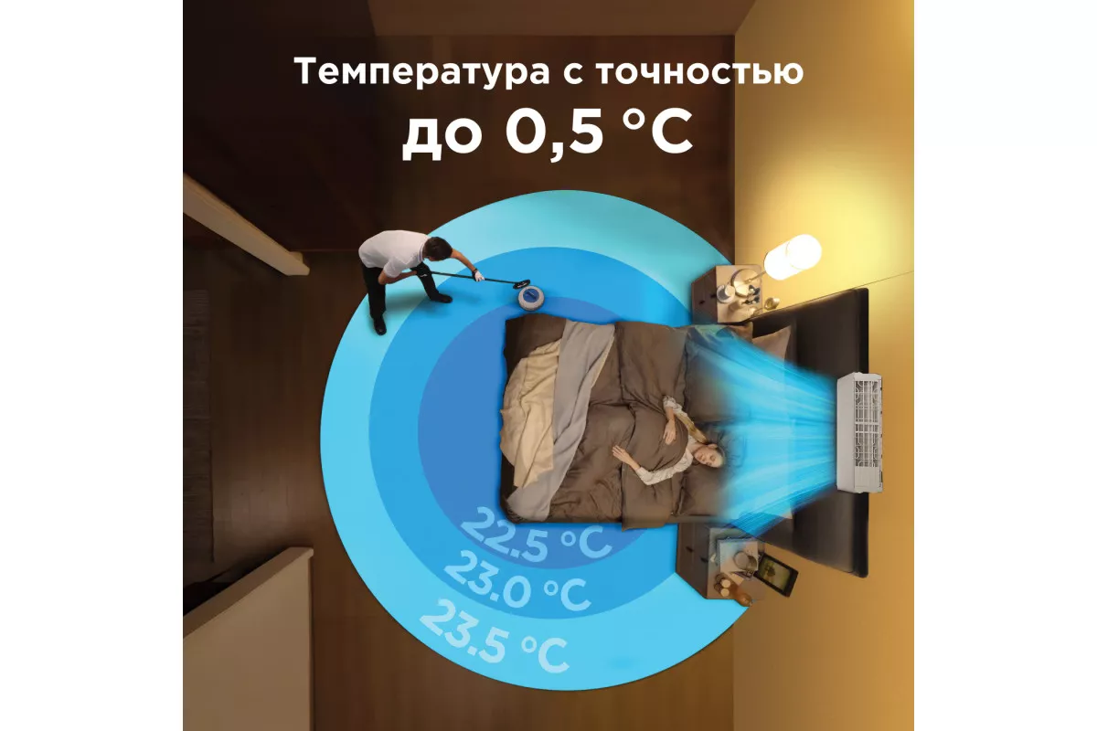 Эта модель предназначена для помещений площадью до 25 м², обеспечивая эффективное охлаждение и обогрев.