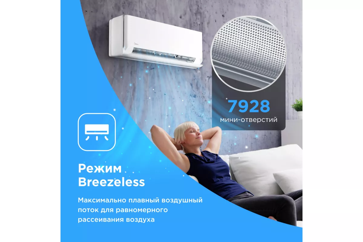 Выбирая Midea Breezeless E, вы получаете не только высокую производительность, но и комфортный микроклимат без сквозняков. Благодаря инновационной технологии Breezeless™, воздух равномерно распределяется по комнате, создавая ощущение естественной прохлады. Энергоэффективность класса A++ позволяет снизить энергопотребление и сэкономить на счетах за электроэнергию.
