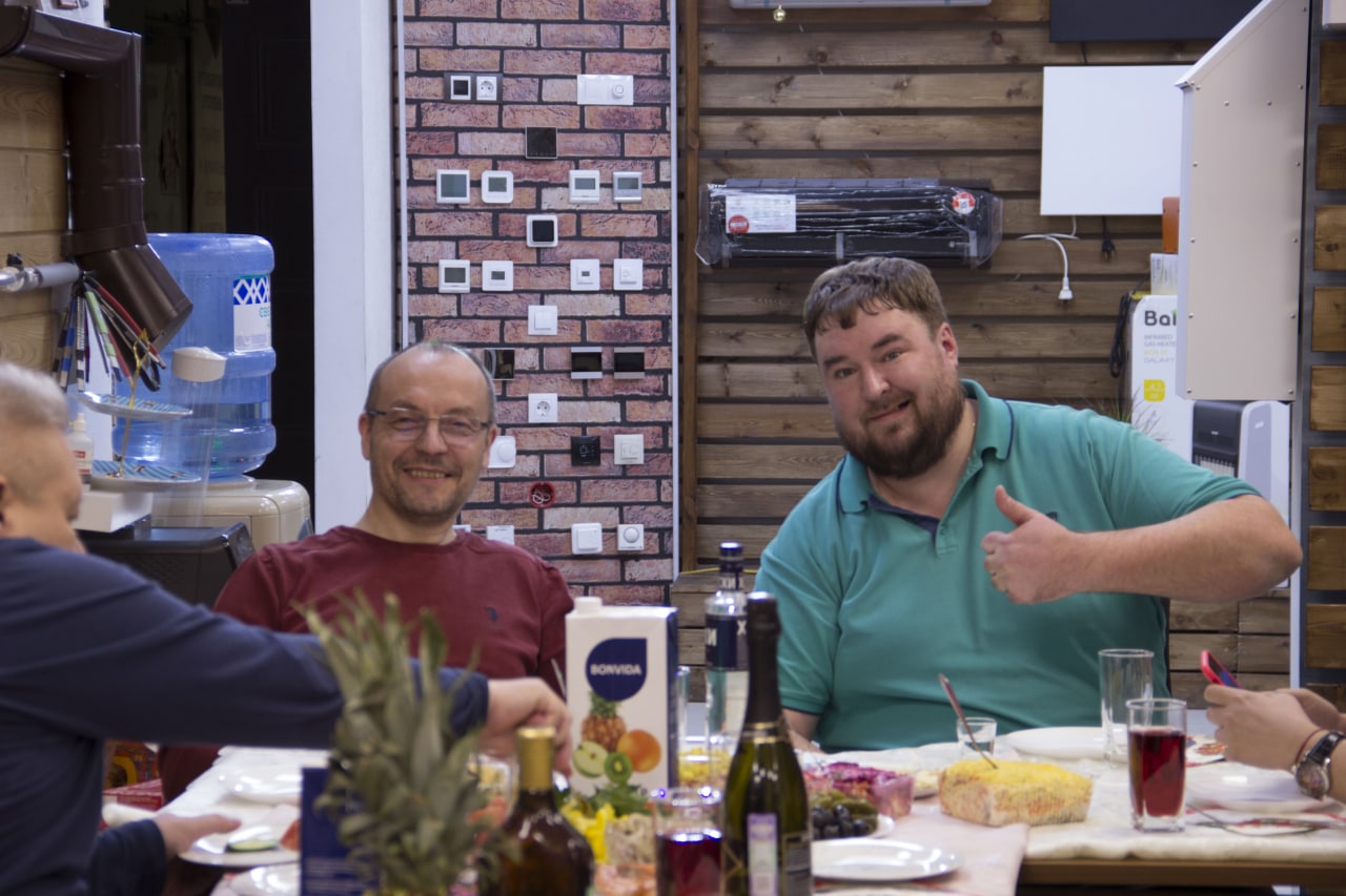 По уже старой, доброй традиции, мы отмечаем свой корпоративный праздник в нашем уютном родном, просторном офисе. Приглашаем друзей, наших партнёров, жён, друзей друзей и в этой атмосфере начинаем общение, начинаем поздравления. Так получилось и в этот раз! Были приглашены наши партнёры – руководитель Новосибирского филиала компании «Теплолюкс» Сергей Киндин, менеджер Елена Музыка. Были наши партнёры – смежники, строители в лице Виталия, нашего постоянного партнёра. Были сотрудники Бурана, которые уже с нами не работают, но все мы знаем, что бывших «Бурановцев» не бывает! Поэтому всегда ребята приезжают к нам и по поводу и без, и мы очень рады друг друга видеть! Был председатель ТСЖ нашего родного дома на улице Ипподромской, 44 – Дмитрий Александрович. В котором уже 15 лет наш офис располагается и дарит людям тепло и холод! Заходили в гости наши соседи из офиса «Жилфонд»’а, и украсили наш вечер песнями и танцами! Наш инженер Георгий Витальевич всегда, на каждую вечеринку имеет в арсенале светомузыку, отлично звучащие колонки, дым-машину, стробоскопы и офис превращается в конкретный клуб, танцы, караоке, веселье, общение, смех и шутки, открытая душа - это наша корпоративная культура отдыха! Фотоотчёт для просмотра рекомендую!