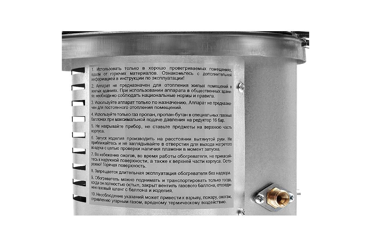 Прибор изготавливается из нержавеющей стали и работает на пропан, пропан-бутан, или бутановом газе. Обогреватель оснащается удобным пьезорозжигом.