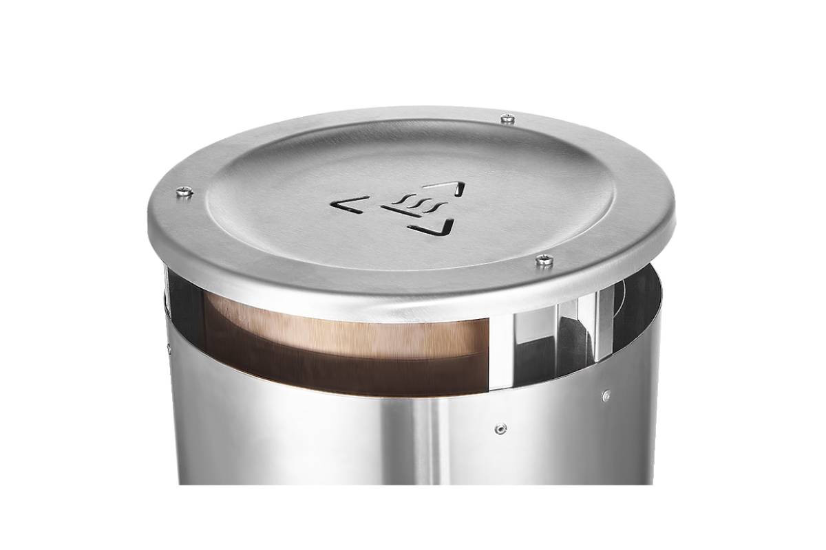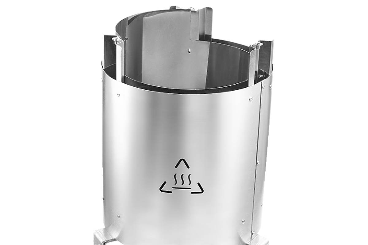 Принцип работы – газ через редуктор поступает в электромагнитный клапан, который регулируется термопарой. Горение происходит на горелке в камере сгорания, которая защищена двойным корпусом от прикосновения. Крышка сверху предотвращает выброс открытого пламени, излучает инфракрасное и конвективное тепло, также защищает горелку от прямых осадков.