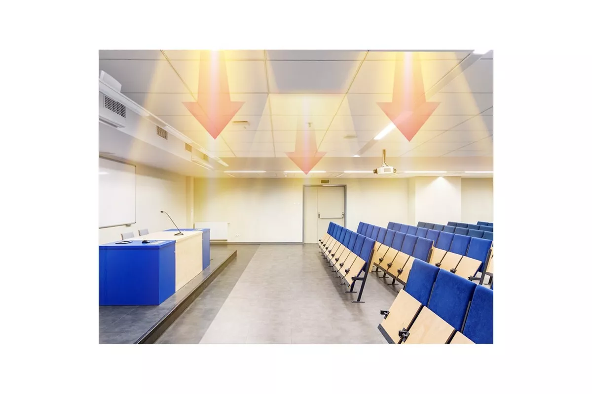 Сфера применения - Обогреватели оптимально подходят для обогрева офисных, торговых, общественных помещений, а также кафе, баров, ресторанов – любых помещений, где используются системы подвесных потолков типа «Армстронг».