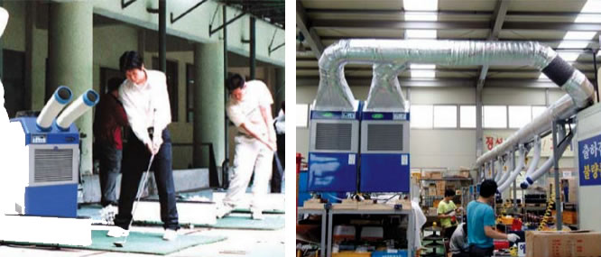 В чем успех этих мобильных промышленных кондиционеров? Да именно в том, что они мобильны! Это их главное преимущество. Всё объединено в один блок и для успешной работы нужно только подвести воздуховоды. Применяют их там, где стационарное охлаждение производственного помещения не установлено, нецелесообразно, необходимо сезонно или временно, а также при поломках уже установленного климатического оборудования. Часто применяют их для создания комфортного микроклимата для определенных зон и отдельных рабочих мест.