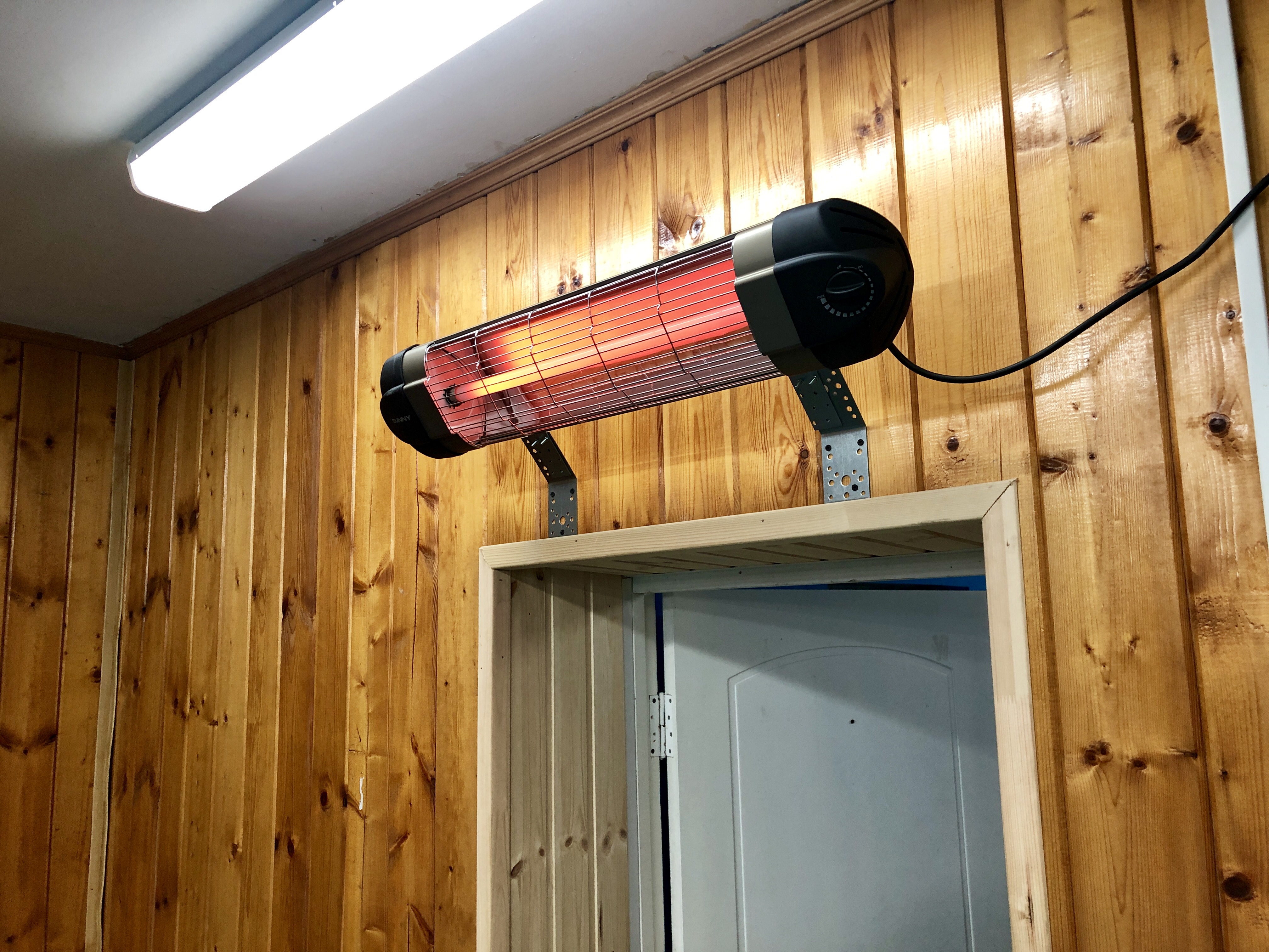 Кронштейн крепления световых обогревателей мы доработали, чтобы направить тепловой поток в нужном направлении и отодвинуть обогреватель от деревянной обшивки стены, на фото это видно. Примечательно то- что добиться существенного теплового эффекта удалось минимальной мощностью обогревателей. После включения обогревателя в спортзале стало существенно теплее. Есть предположение, учитывая довольно мягкие климатические условия Сочинского региона, что одного светового обогревателя 2кВт на 70 квадратных метров будет достаточно. На данный момент, в нашей практике, это рекорд эффективности. Но,  на всякий случай, мы разместили ещё несколько, в качестве резервных источников тепла на случай снижения температуры за окном. Теперь можно не переживать, что юные спортсмены вместо пользы от занятий получат простуду. Удачи им в спорте и побед!
