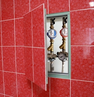 Ревизионные люки, устанавливают не только в стене. Например, превосходный внешний вид , они будут иметь и в перегородке и замаскируют все инженерные коммуникации.