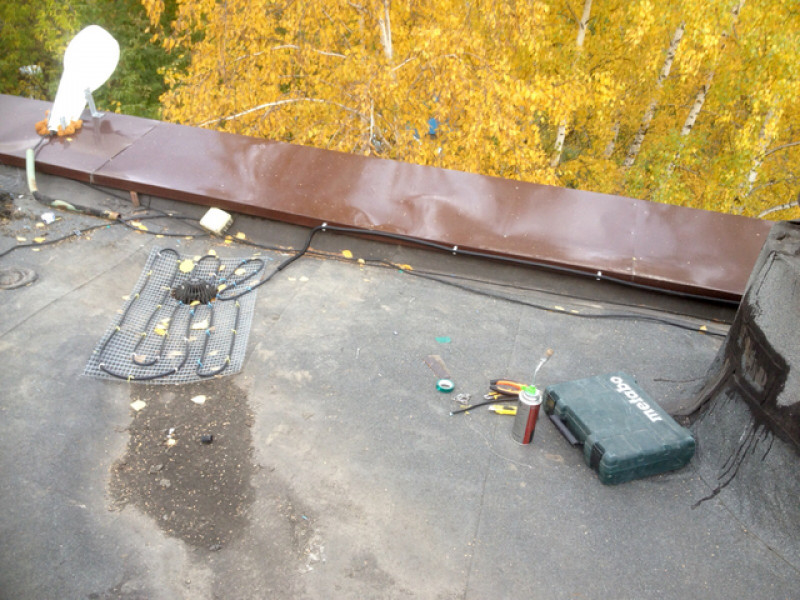 С учетом климатических условий Новосибирска, система была выполнена на основе саморегулирующегося греющего кабеля производства Южная Корея. Кабель заложен мощностью 40Вт на погонный метр. Важным аспектом в выборе нагревательного кабеля на крышу служит наличие оплетки с защитой от ультрафиолетового воздействия. Зачастую,недобросовестные продавцы позволяют себе использовать греющие кабели с покрытием из обычного ПВХ, снижая тем самым стоимость. Но подобная «экономия» приводит к очень быстрому выходу кабеля из строя. Этот нюанс нужно обязательно учитывать.