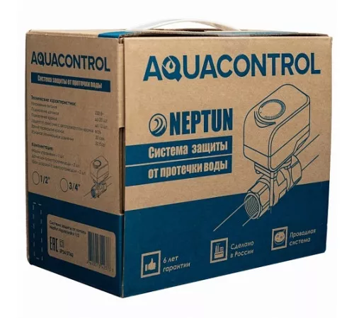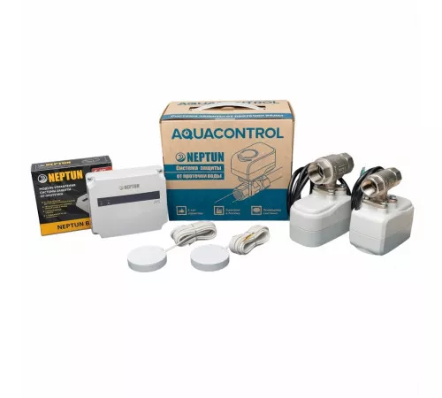 Система контроля протечки воды Neptun Aquacontrol предназначена для своевременного обнаружения и локализации протечек воды в системе водоснабжения и отопления жилых домов, коттеджей, офисных зданий, магазинов. Система заблокирует подачу воды до устранения причин протечки и проинформирует о возникшей аварии звуковым и световым сигналами.