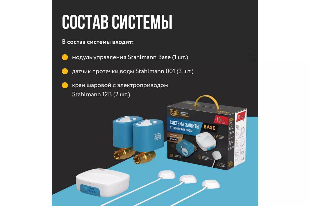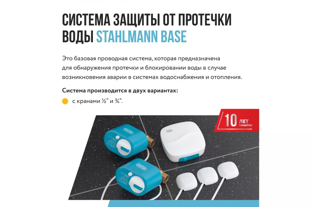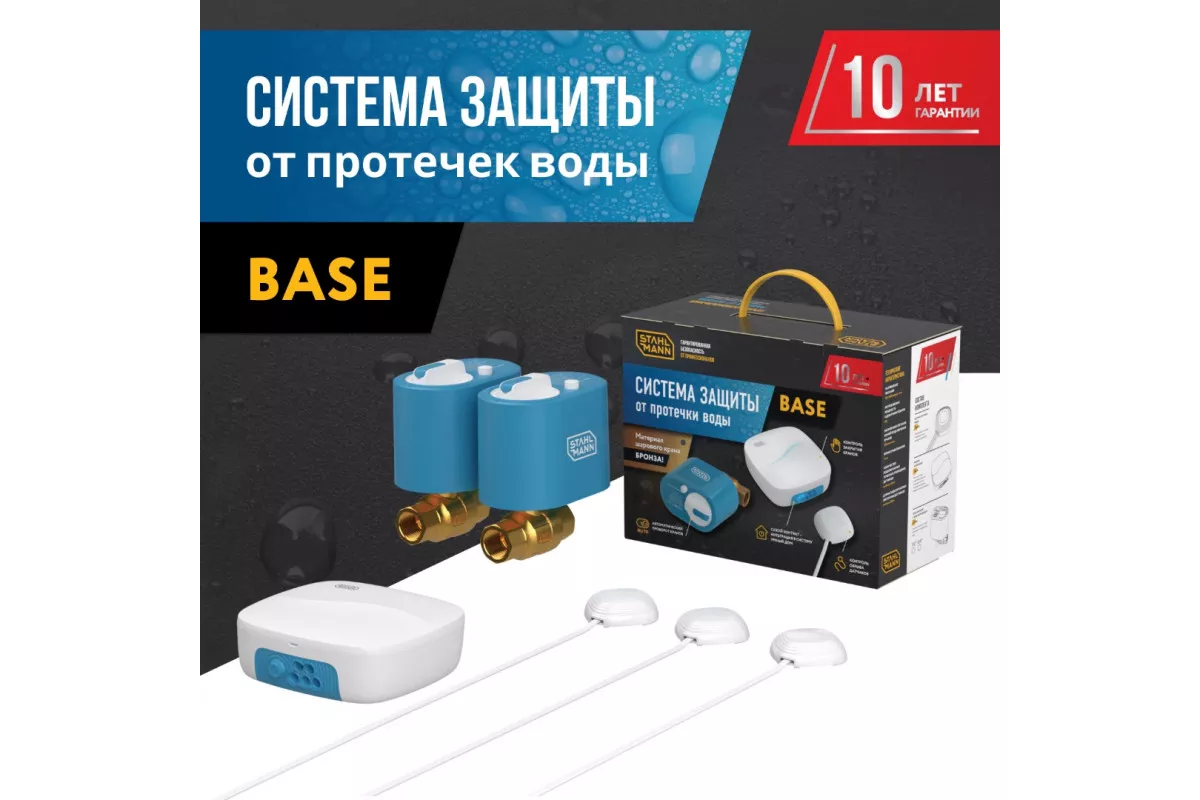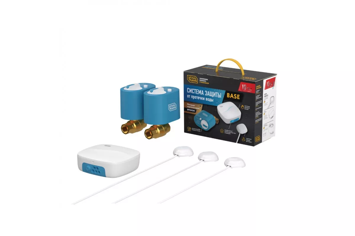 Базовая проводная система защиты от протечек воды, которая предназначена для защиты от затопления помещения водой в случае возникновения аварии в системах водоснабжения и отопления.