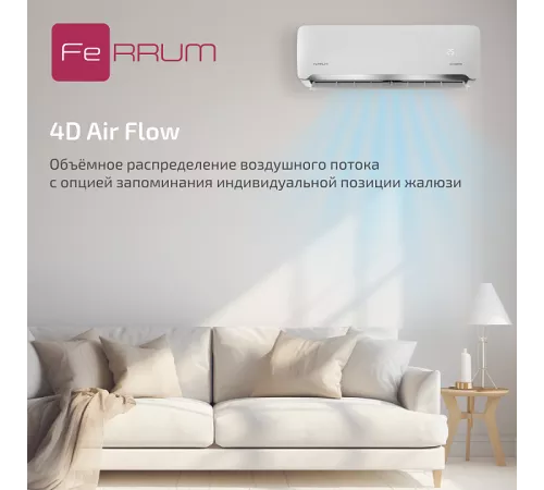 • Объемное распределение воздуха (4D Air Flow): автоматическая регулировка горизонтальных и вертикальных жалюзи для равномерного распределения воздушного потока.​