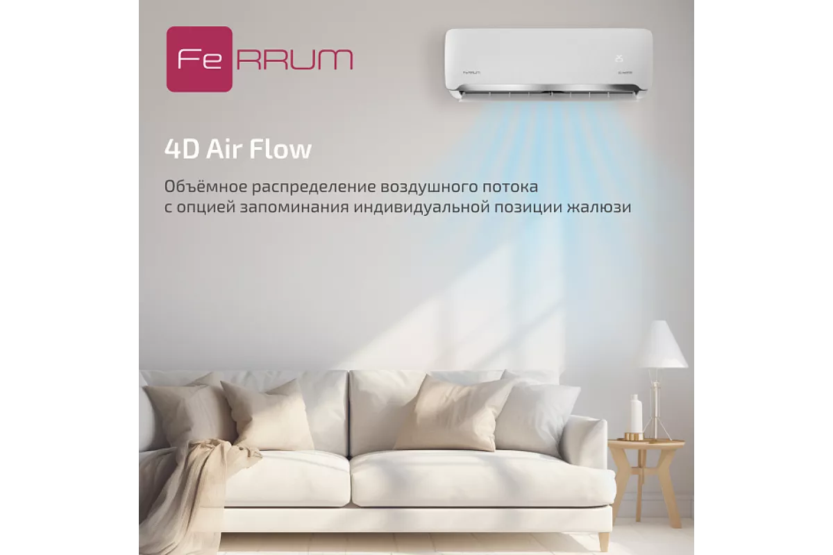 Объемное распределение воздушного потока (4D Air Flow): равномерное охлаждение или обогрев всего помещения.