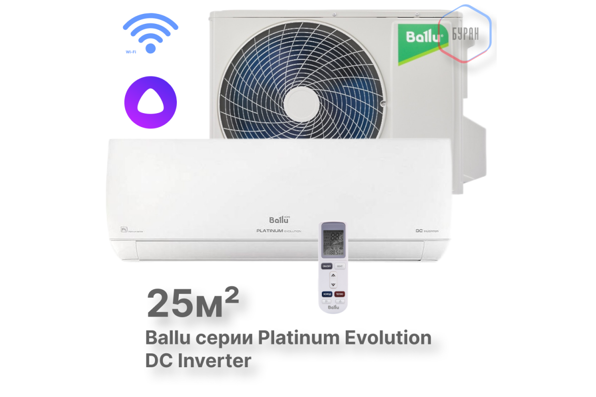 Сплит-система инверторного типа Ballu Platinum Evolution DC BSUI-09HN8_V4 комплект идеально подходит для помещений площадью до 25 м² .