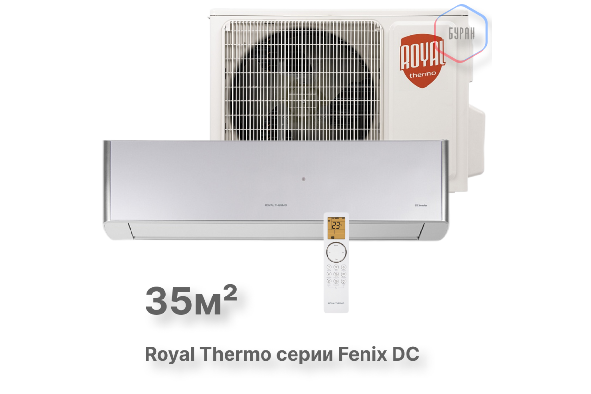 Сплит-система инверторного типа Royal Thermo Fenix DC RTFI-12HN8/silver комплект идеально подходит для помещений площадью до 35 м². Это делает его отличным выбором для квартир, офисов или небольших домов. 🏠​