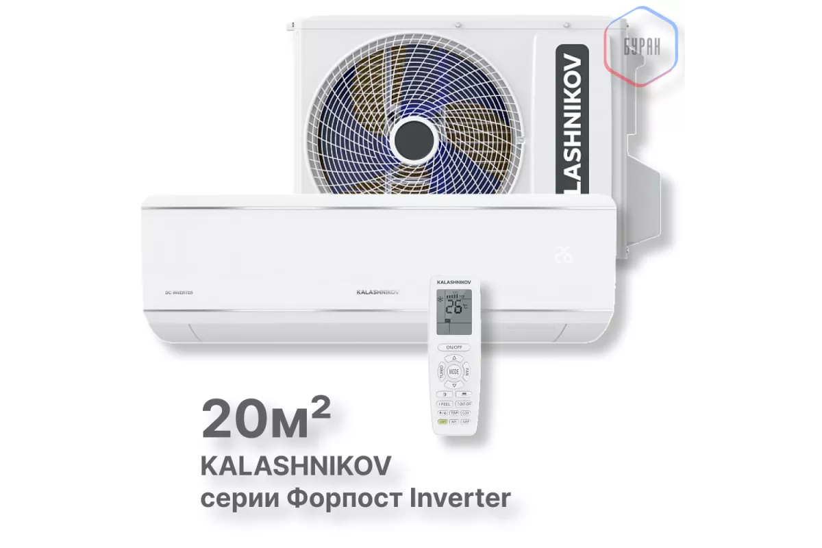 Правильный выбор кондиционера обеспечивает комфортный микроклимат и энергоэффективность.KALASHNIKOV Форпост Inverter сочетает в себе высокую производительность и экономичность, обеспечивая оптимальную температуру при низком энергопотреблении.​