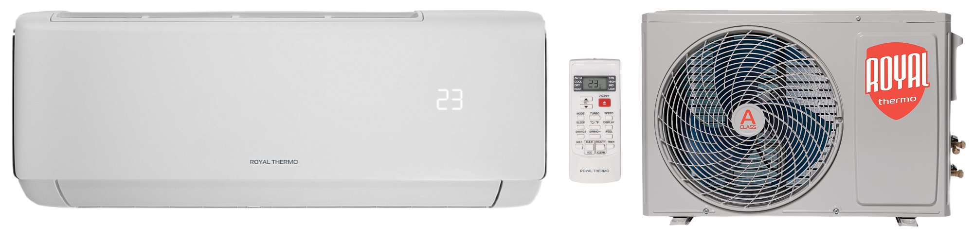 Royal Thermo Milano сочетает в себе элегантный дизайн и передовые технологии. Благодаря классу энергоэффективности A, вы получаете эффективное охлаждение и обогрев при минимальных затратах энергии.Уровень шума от 24 дБ обеспечивает тихую работу, не нарушая ваш покой.