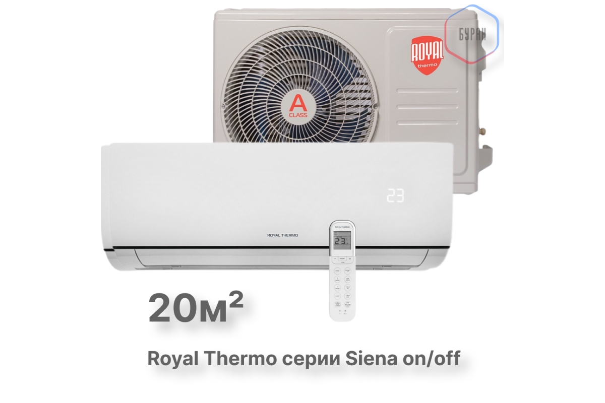 Royal Thermo Siena on/off сочетает в себе надежность, простоту управления и доступную цену.Благодаря технологии on/off, кондиционер быстро достигает заданной температуры и поддерживает комфортный микроклимат в помещении. Энергоэффективность класса A обеспечивает экономное потребление электроэнергии.