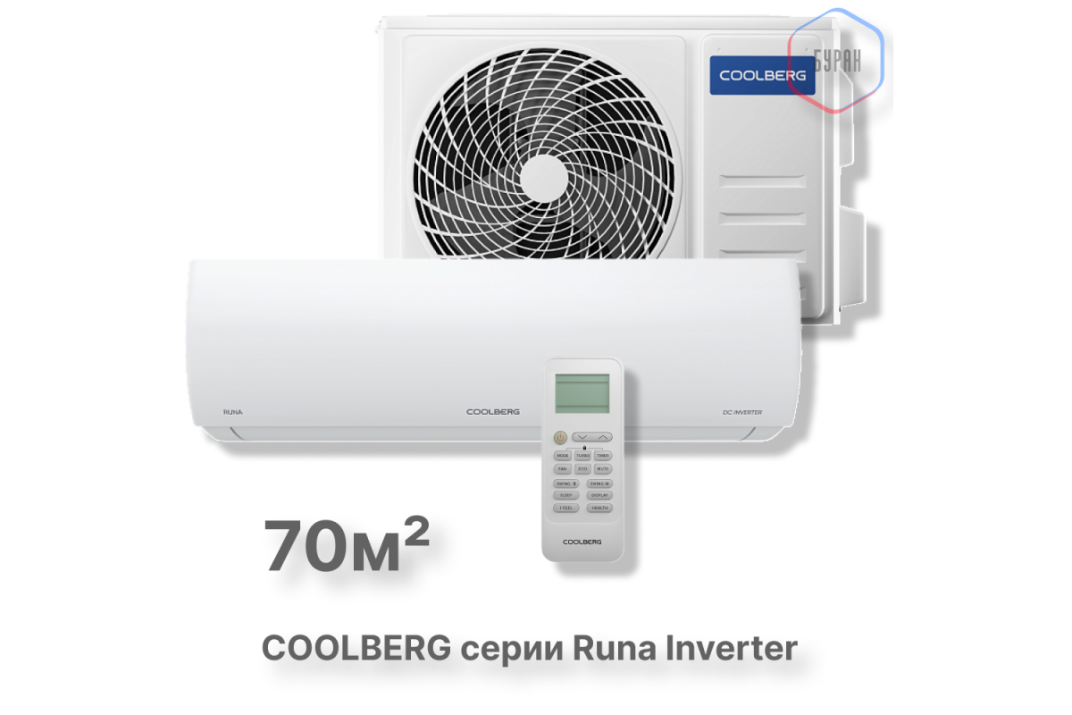 Сплит-система COOLBERG Runa Inverter CI-24R1-IN / CI-24R1-OUT отлично подходит для помещений площадью до 70 м². Если вам нужен надёжный климат-контроль в просторной комнате, офисе или торговом зале, эта модель станет отличным решением! ✅