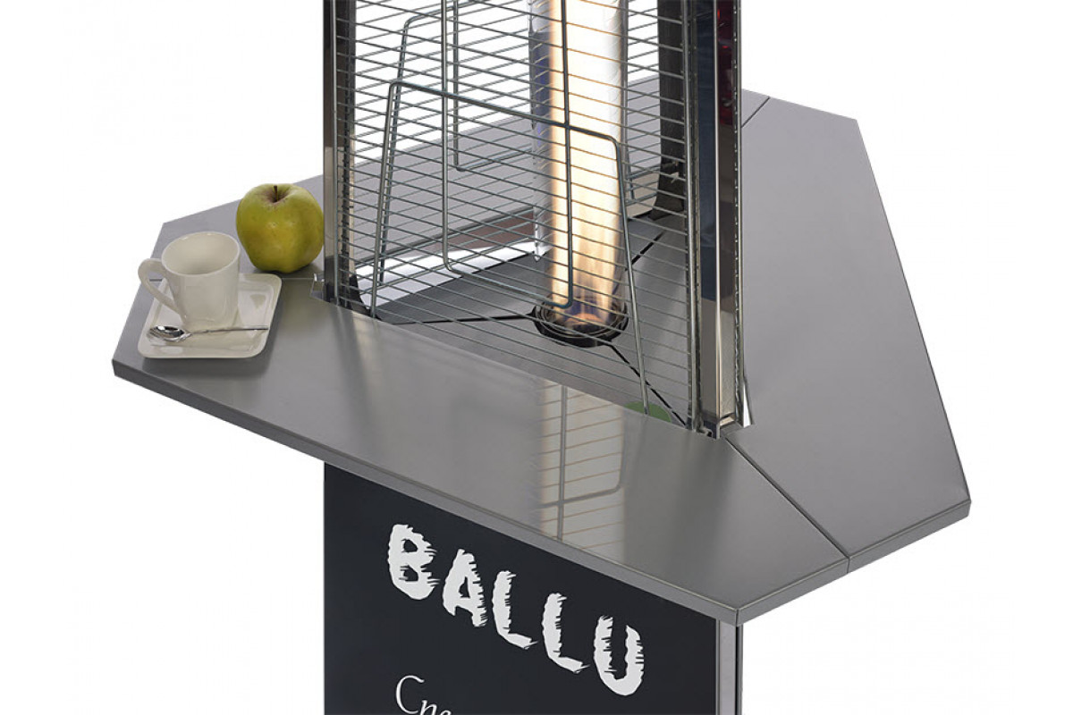 Столик разработан инженерами Ballu с учётом всех особенностей использования уличных обогревателей на летних верандах ресторанов и в уличных кафе.