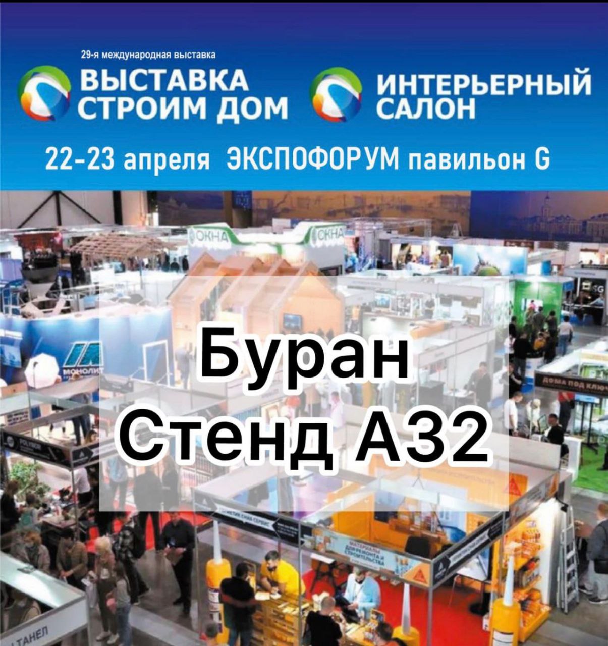Дорогие друзья! Компания Буран приглашает Вас на 29-ю международную выставку «Строим дом» - одна из крупнейших выставок в России, которая пройдёт в городе Санкт-Петербург, 22-23 апреля 2023 г., в Экспофорум, Петербургское шоссе, 64/1.