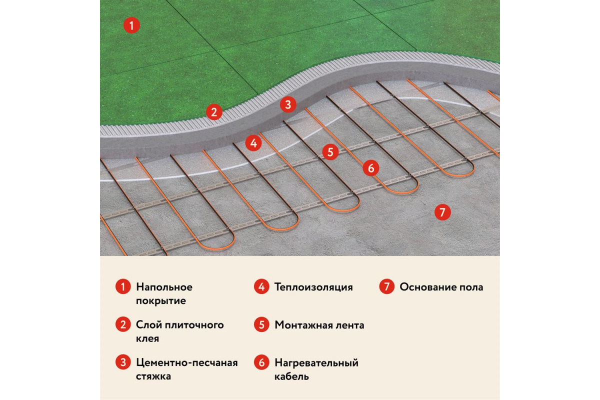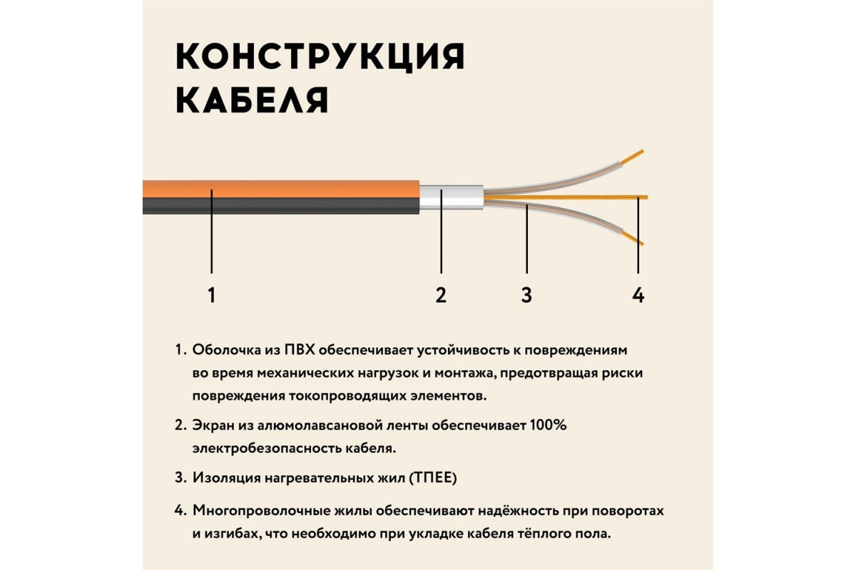 Теплый пол кабельный "Русское тепло" РТ-230-10,5 — надёжный нагревательный мат под плитку