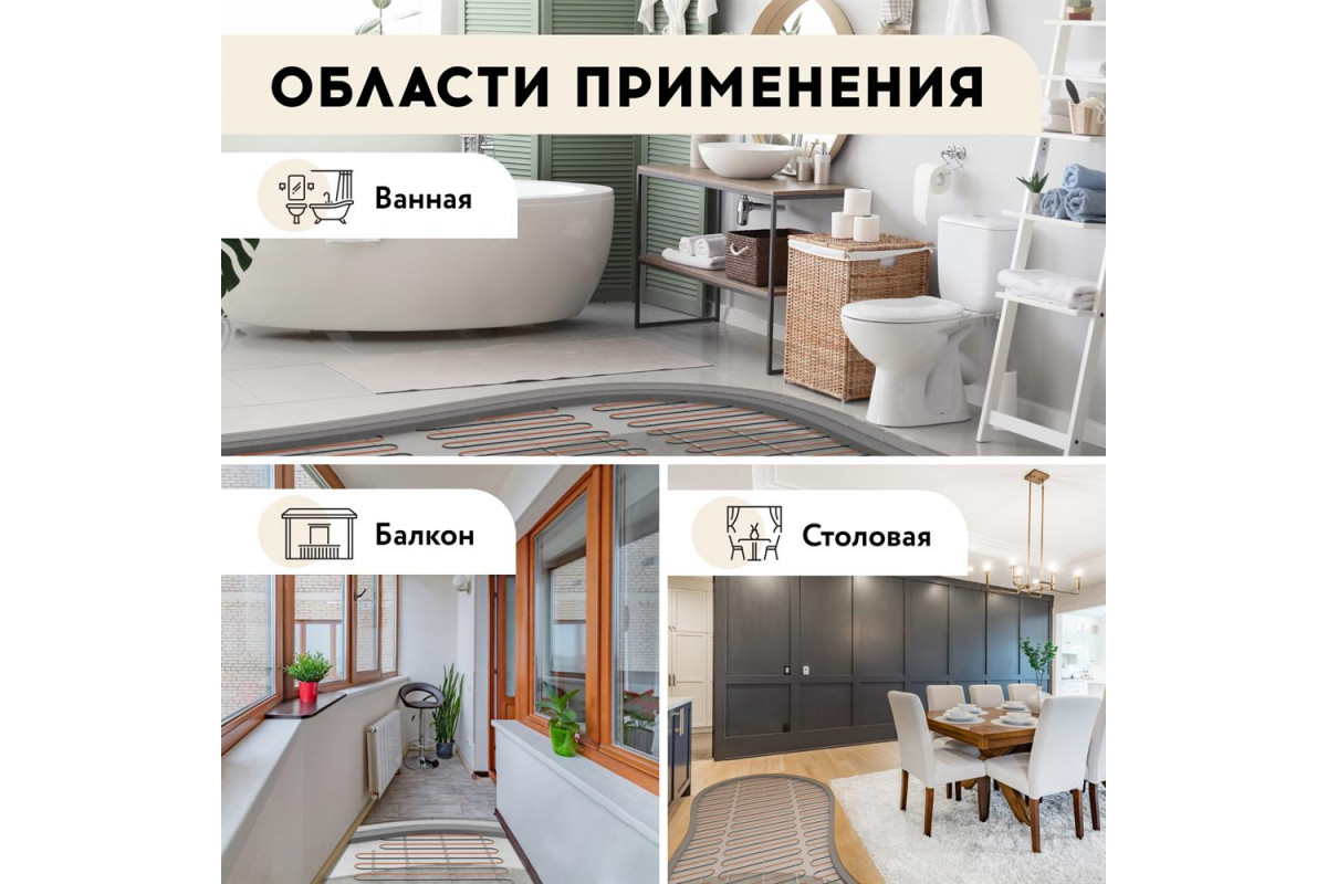 Нагревательный мат "Русское тепло" РТ-230 идеально подходит для помещений с повышенной влажностью и плиточным покрытием: