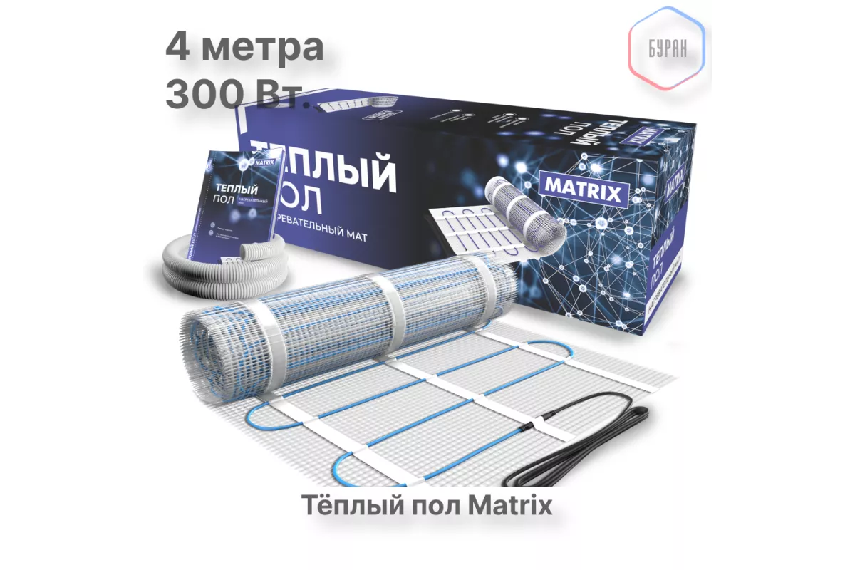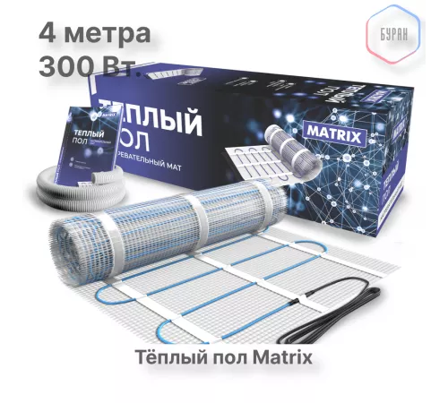Нагревательный мат теплого пола MATRIX позволит Вам смонтировать теплый пол на площади от 0.5 квадратных метров. Основа из эластичного волокна  дает возможность укладывать мат без особых усилий и придавая нагреваемой площади нужную форму.