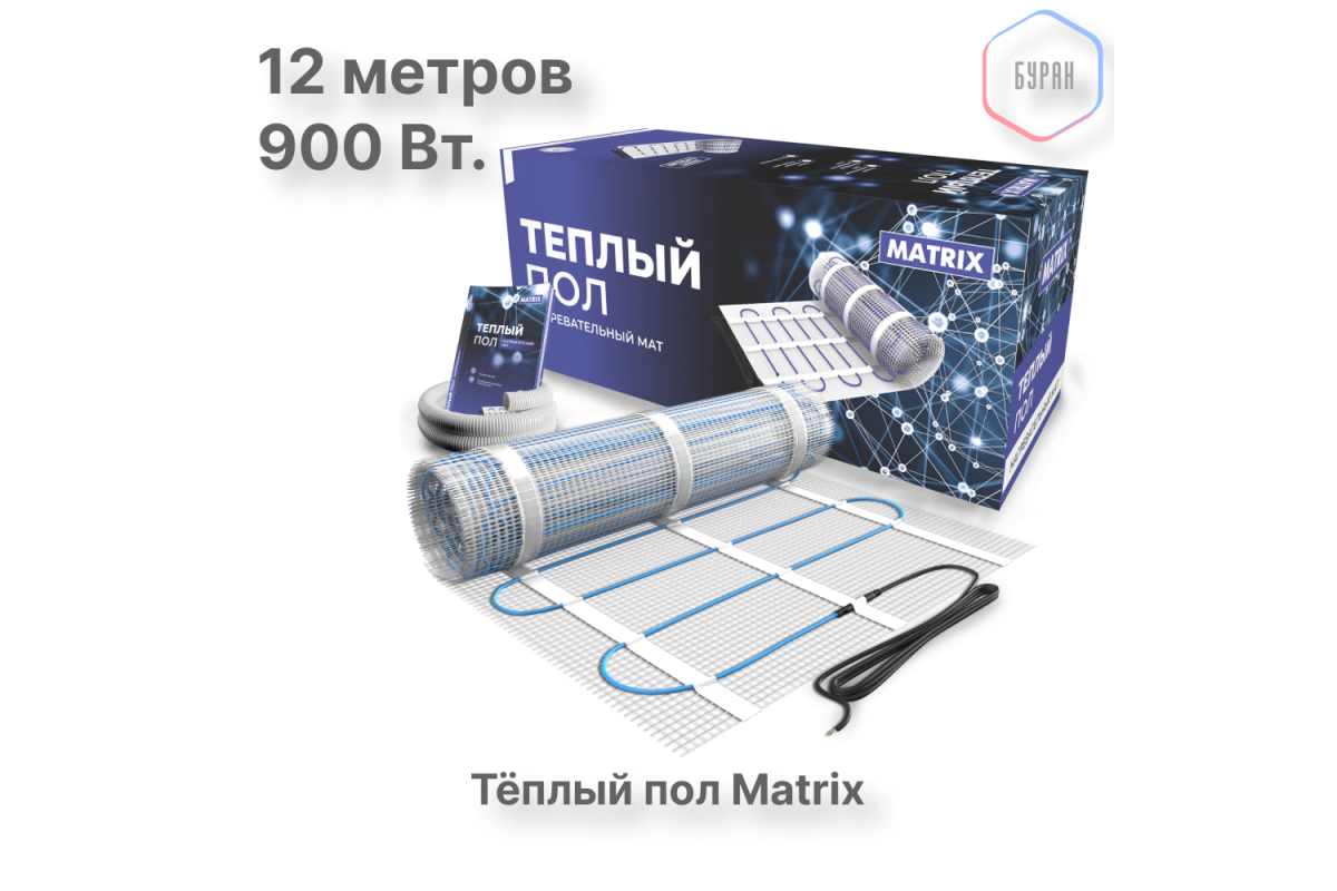Нагревательный мат теплого пола MATRIX позволит Вам смонтировать теплый пол на площади от шести квадратных метров. Основа из эластичного волокна  дает возможность укладывать мат без особых усилий и придавая нагреваемой площади нужную форму.