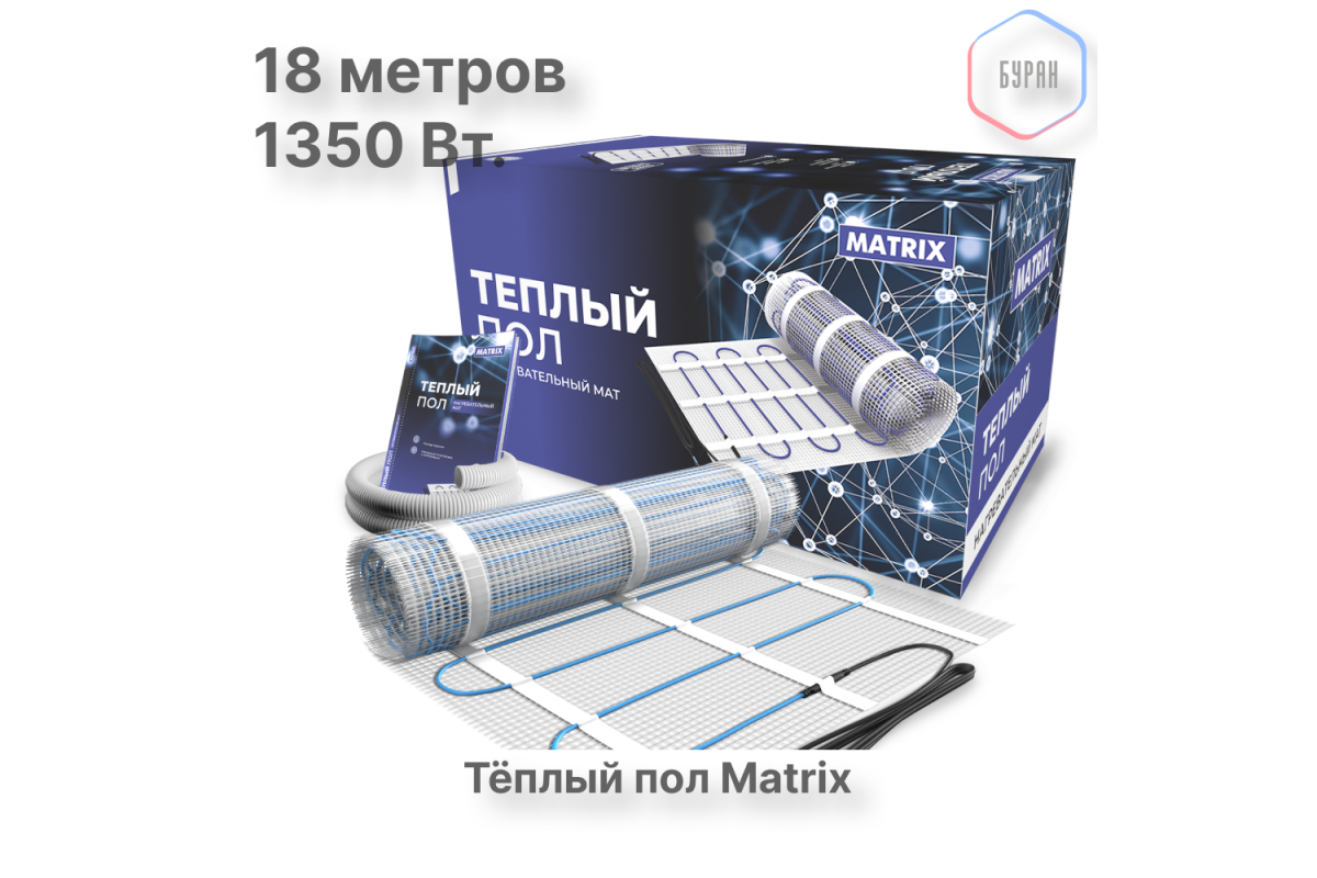 Нагревательный мат теплого пола MATRIX позволит Вам смонтировать теплый пол на площади от девяти квадратных метров. Основа из эластичного волокна  дает возможность укладывать мат без особых усилий и придавая нагреваемой площади нужную форму.
