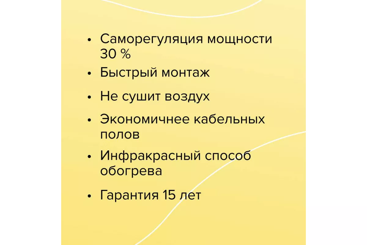 Инфракрасная технология нагрева обеспечивает быстрое и равномерное распределение тепла по всей поверхности пола. Это создает комфортные условия в помещении и способствует снижению энергозатрат.