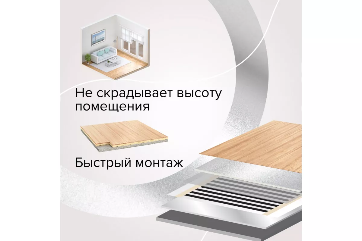 Благодаря инфракрасному излучению с длиной волны 5–20 мкм, теплый пол обеспечивает равномерный прогрев поверхности, создавая комфортные условия в помещении. Антиискровая сетка повышает безопасность эксплуатации, предотвращая возможные короткие замыкания.