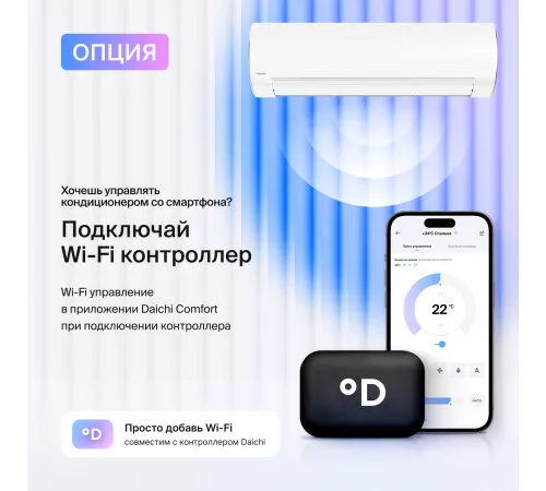 • Wi-Fi управление (опция): возможность удаленного контроля через смартфон или ПК для максимального удобства.