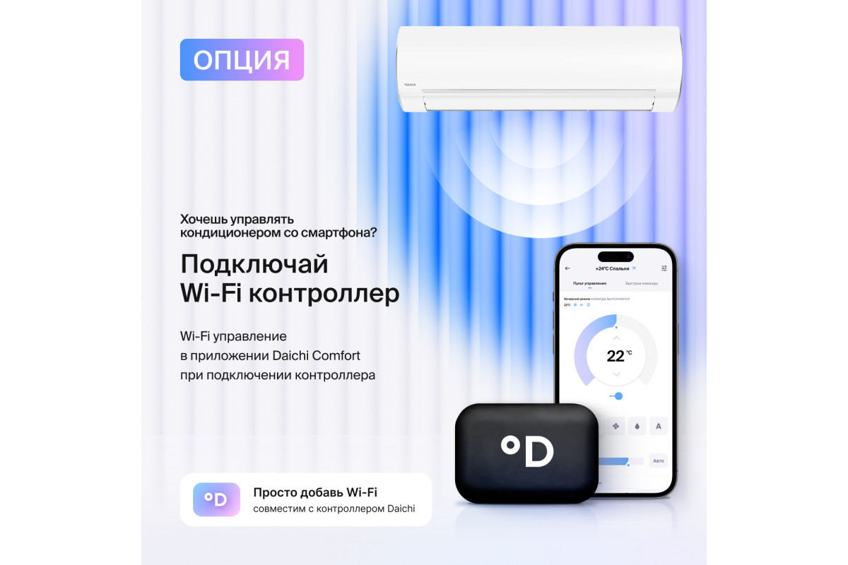 • Wi-Fi управление (опция): возможность удаленного контроля через смартфон или ПК для максимального удобства.