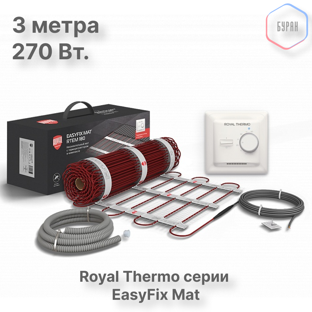 Мат нагревательный Royal Thermo Flat Mat RTFM 2-150-2,5 с терморегулятором RTO-16
