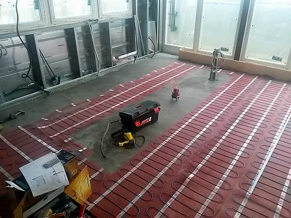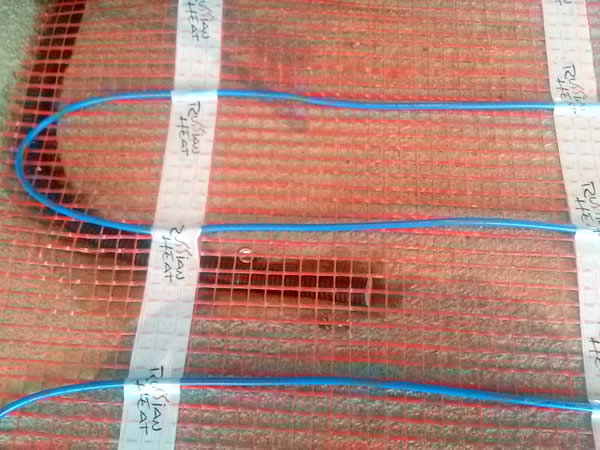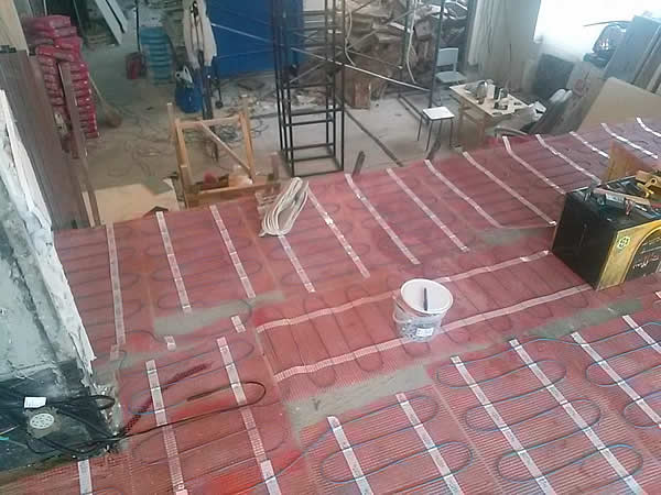 В качестве нагревательного элемента выбран двужильный нагревательный мат Russian Heat с уникальной самоклеящейся основой. Его удобно и быстро монтировать, а при укладке финишного полового покрытия, он не сдвигается и не смещается.