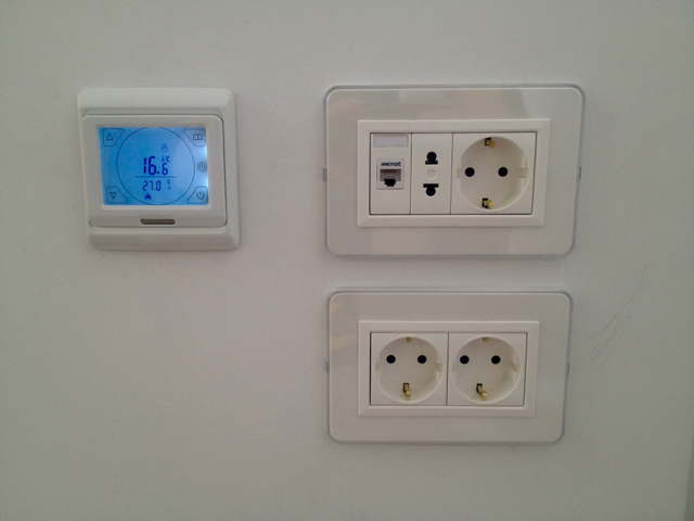 Зачастую сложно представить как будет выглядеть прибор после монтажа. Данный вопрос стоит одним из ключевых, при выборе терморегулятора для теплых полов. Помимо эстетической стороны вопроса стоит не менее важная- техническая составляющая. Представляем вашему внимаю подборку снимков «живого» исполнения терморегулятора RTC 91.716 белого цвета. Монтаж выполнен специалистами компании “Буран” в одной из квартир города Москвы. Технические характеристики и оптимальное соотношение цена - качество позволили стать этому устройству одним из самых популярных представителей терморегуляторов для теплого пола.  Он способен выдержать нагрузку до 3, 5 Киловатт установленной мощности и может быть использован со всеми разновидностями теплых полов. Несколько способов программации на каждый день позволяют добиться максимального энергосбережения без необходимости участия человека в дальнейшем.
