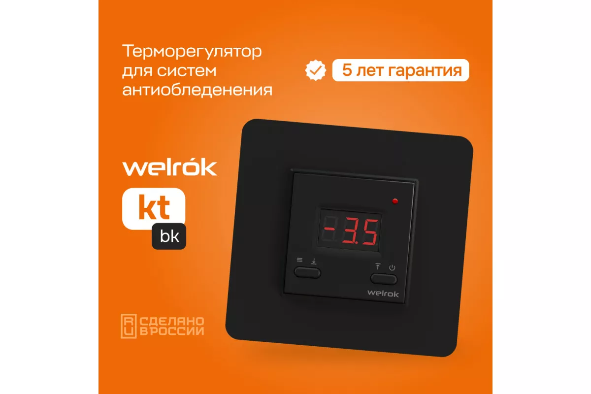 Терморегулятор Welrok KT BK — это надежное и эффективное решение для управления системами снеготаяния и антиобледенения. Он сочетает в себе простоту использования, интеллектуальное управление и высокую надежность, обеспечивая комфорт и безопасность в холодное время года.​