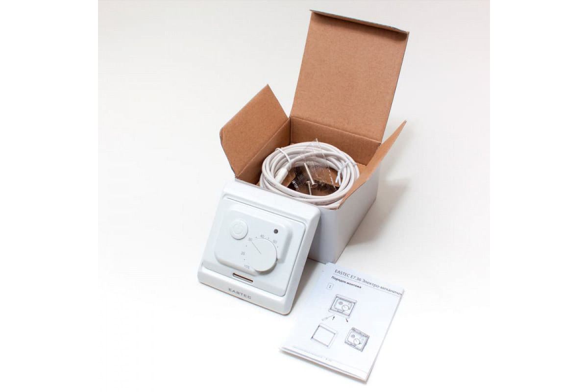 Терморегулятор EASTEC E 7.36 — это механическое устройство управления температурой, предназначенное для систем электрического тёплого пола. Он обеспечивает точную настройку и поддержание комфортного микроклимата в помещении, сочетая простоту использования с надёжностью и долговечностью.