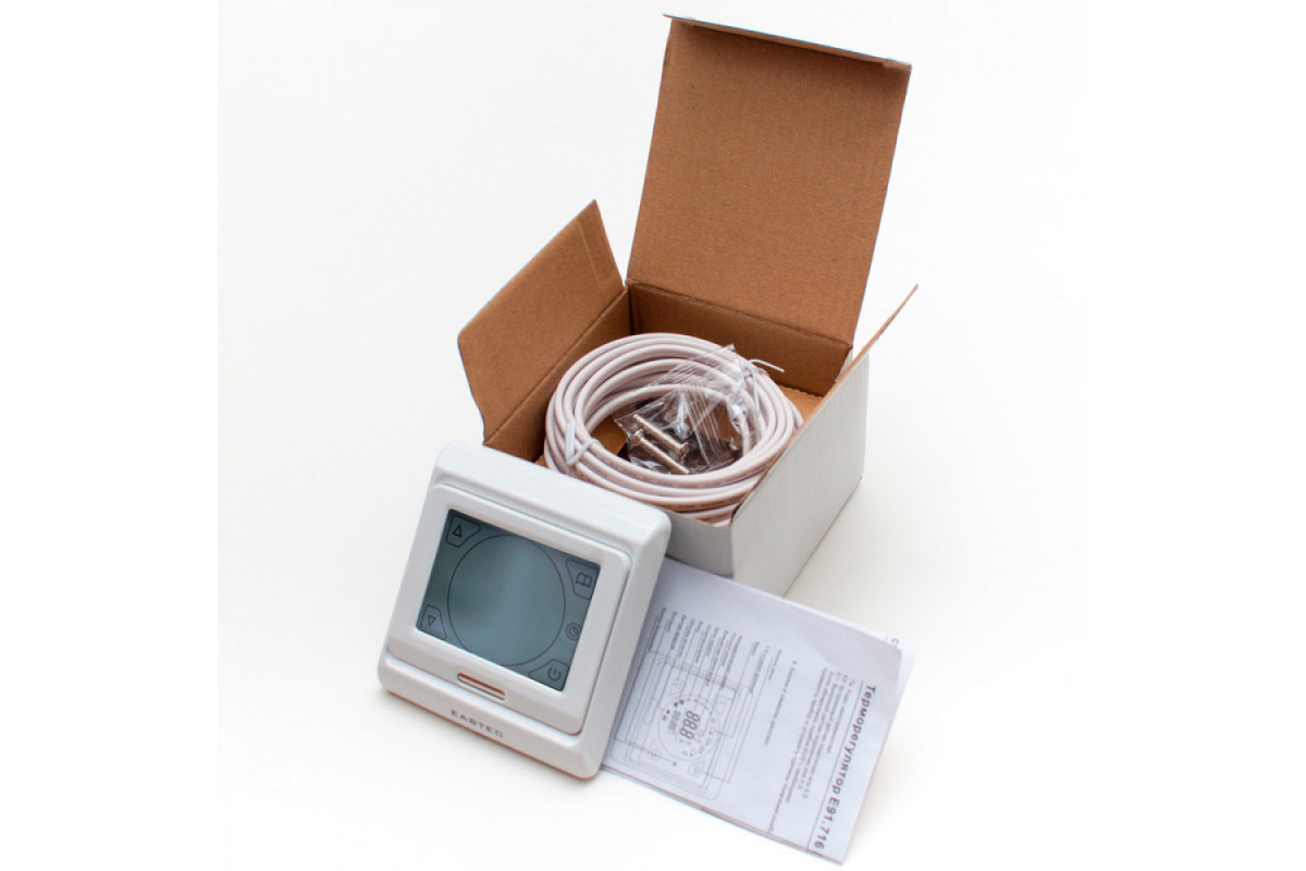 Терморегулятор EASTEC E 91.716 (3.5 кВт) — это современное устройство для управления системами электрического теплого пола и другими отопительными приборами. Благодаря сенсорному управлению, программируемым режимам и высокой точности, он обеспечивает комфорт и энергоэффективность в вашем доме.​