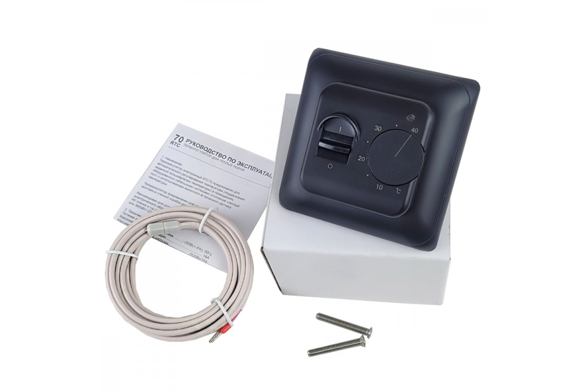 RTC 70.26 оснащен механическим регулятором температуры и тумблером включения/выключения, что делает его интуитивно понятным в использовании. Установка устройства осуществляется в стандартную монтажную коробку диаметром 65 мм, что упрощает монтаж и экономит время.​