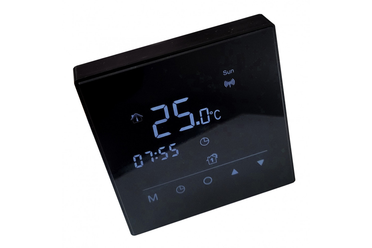 Эта модель выделяется возможностью дистанционного управления через Wi-Fi, что позволяет настраивать температуру с помощью мобильного приложения TUYA или Smart Life. Современный сенсорный дисплей с VA-матрицей обеспечивает удобство использования и стильный внешний вид.​
