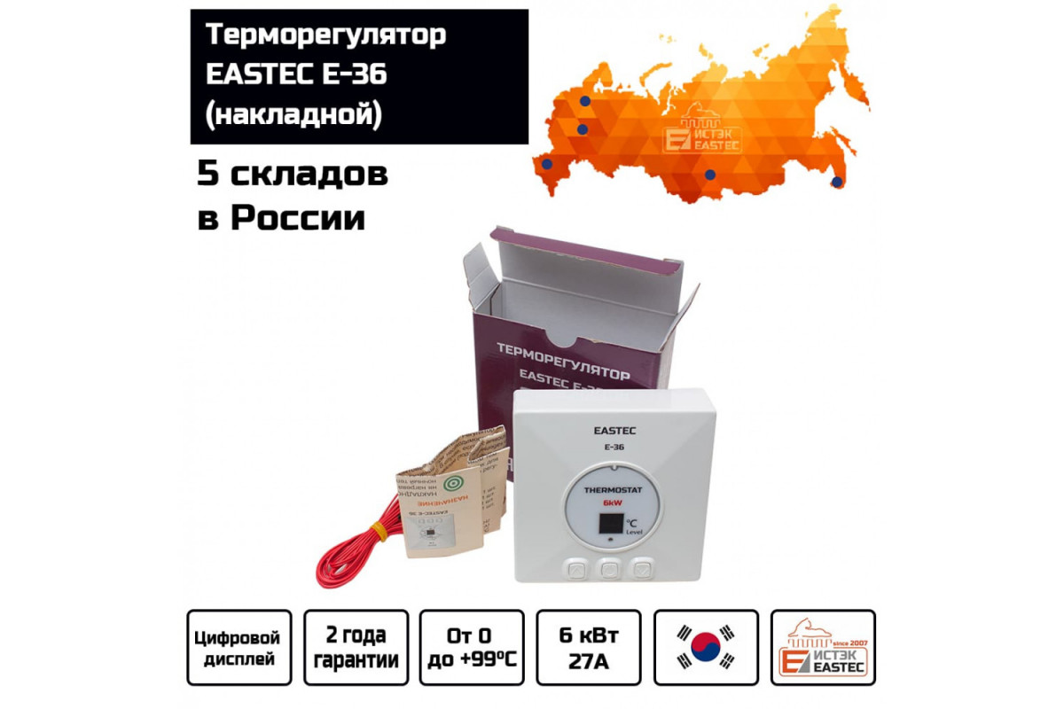 EASTEC E-36 способен управлять нагрузкой до 6 кВт (27 А), что позволяет использовать его с различными системами обогрева, включая нагревательные маты и кабели. Это обеспечивает эффективное отопление помещений различной площади.​
