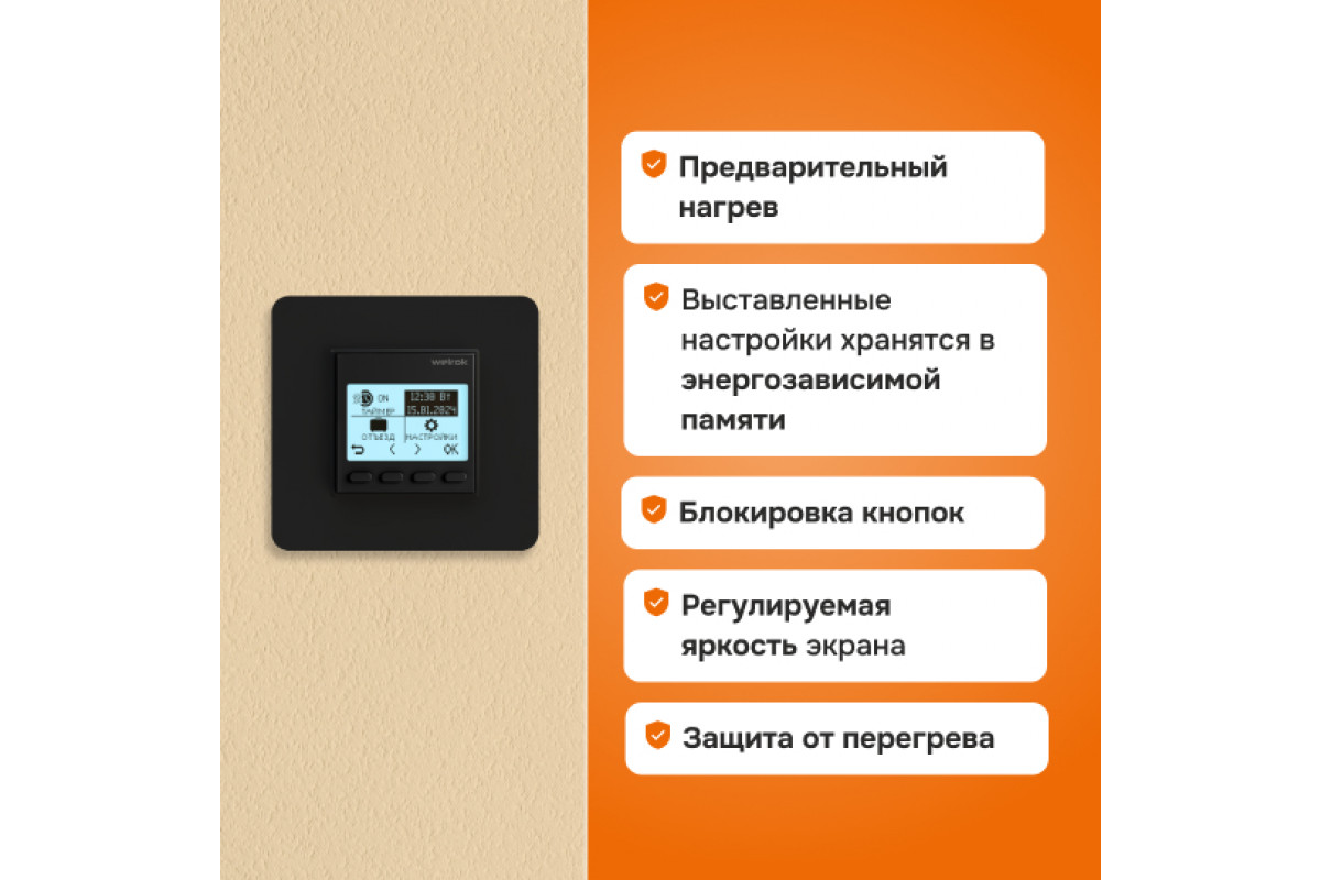Терморегулятор Welrok PRO BK идеально подходит для установки в помещениях с повышенной влажностью, таких как ванные комнаты и кухни, а также в коридорах и жилых зонах.​