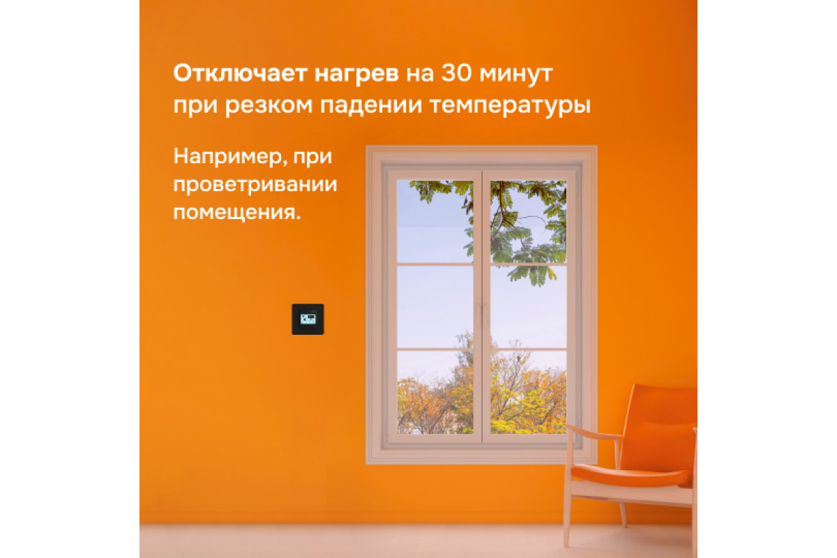 Терморегулятор позволяет устанавливать экономичные температуры на период отсутствия, а также автоматически снижает нагрев при обнаружении открытого окна, что способствует снижению энергопотребления.​