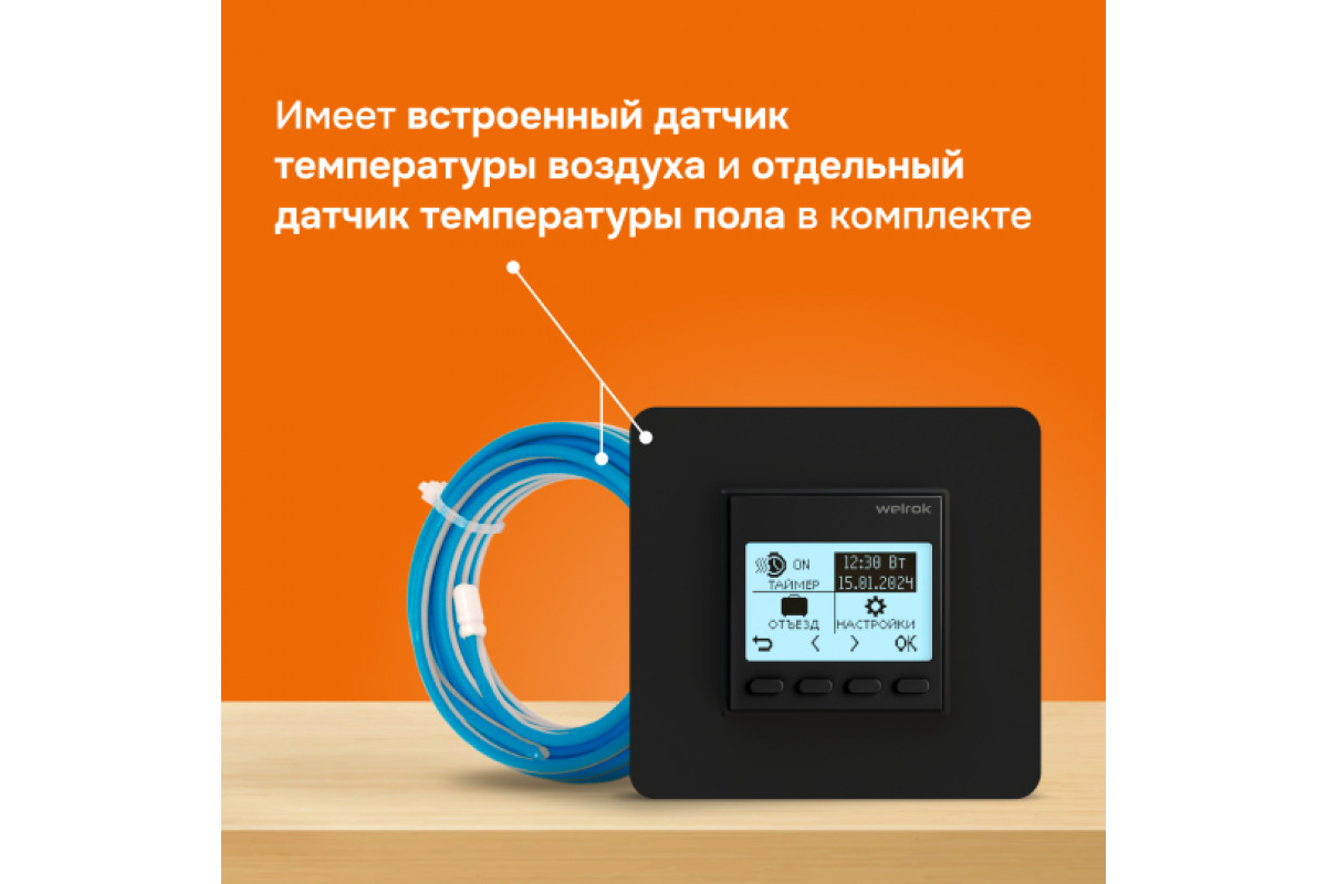 Терморегулятор для тёплого пола Welrok PRO BK — это современное устройство, обеспечивающее точный контроль температуры в системах электрического и водяного обогрева. Благодаря программируемым режимам и удобному управлению, он идеально подходит для поддержания комфортного микроклимата в вашем доме или офисе.​