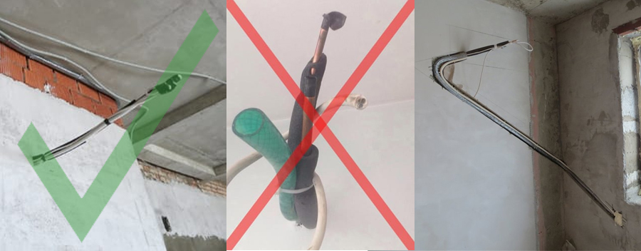 Существует несколько способов укладки трассы кондиционера: