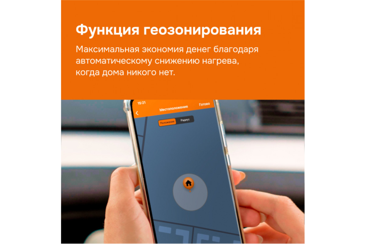 Геозонирование (Geofencing): терморегулятор автоматически снижает температуру при отсутствии жильцов и повышает её перед их возвращением, основываясь на геолокации.
