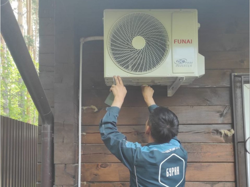 Компания «Буран» продолжает повышать уровень комфорта в частных домах Новосибирской области! На этот раз установка кондиционера была выполнена для нашего уважаемого клиента Сергея Валентиновича, проживающего в селе Матвеевка. В качестве оптимального решения для загородного дома была выбрана **современная и технологичная модель** — инверторная сплит-система TM Funai Shogun, которая идеально сочетает в себе мощность, тишину и энергоэффективность.