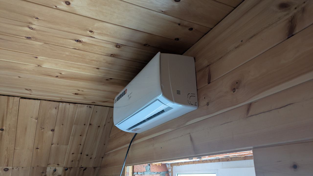 Монтаж был выполнен по технологии "бутерброд", которая идеально подходит для частных домов. Этот метод позволяет быстро и качественно установить сплит-систему без лишних затрат времени и ресурсов.