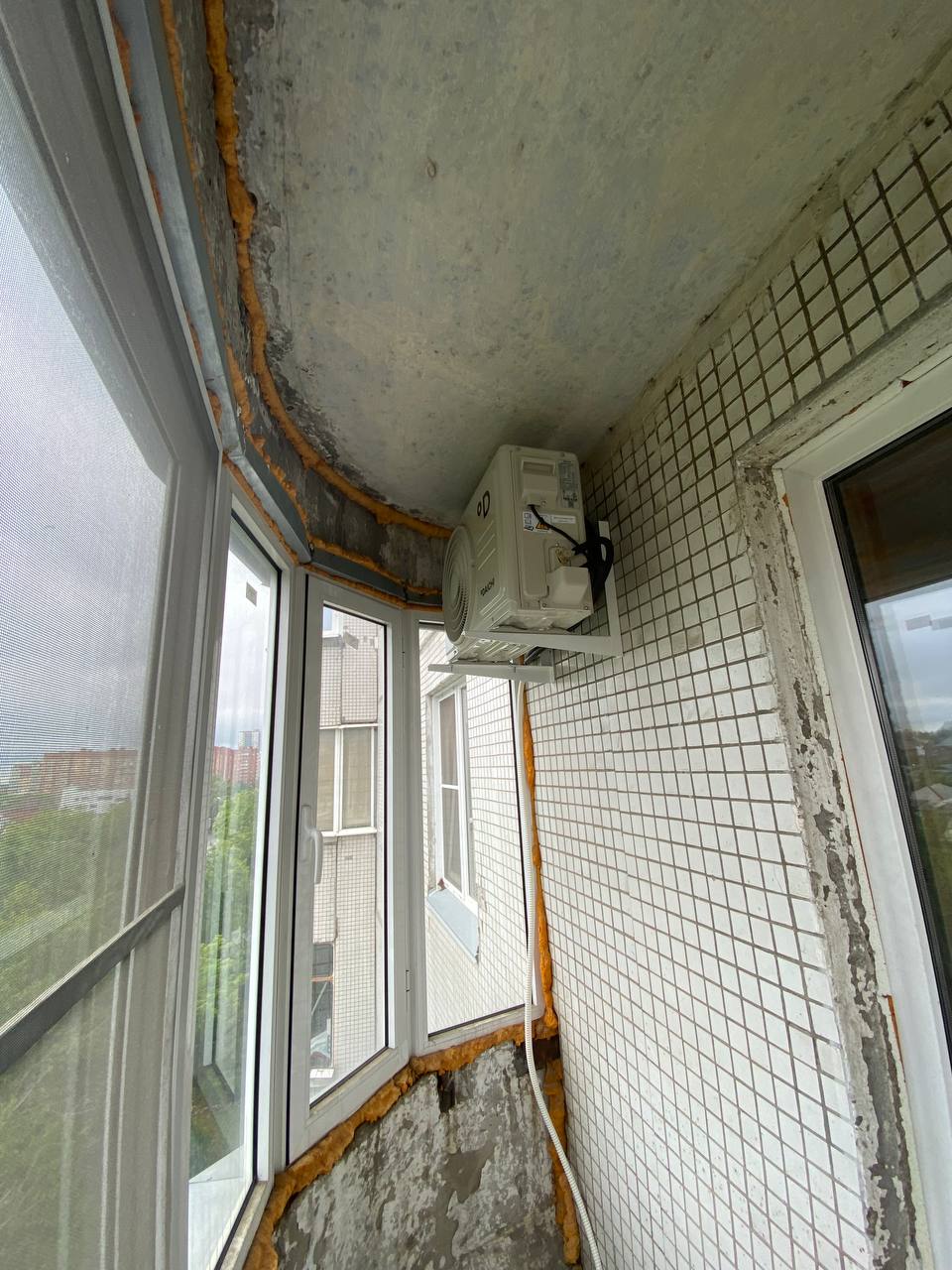 1. Выбор места. Наружный блок был установлен на балконе, что обеспечило удобство обслуживания и безопасность.