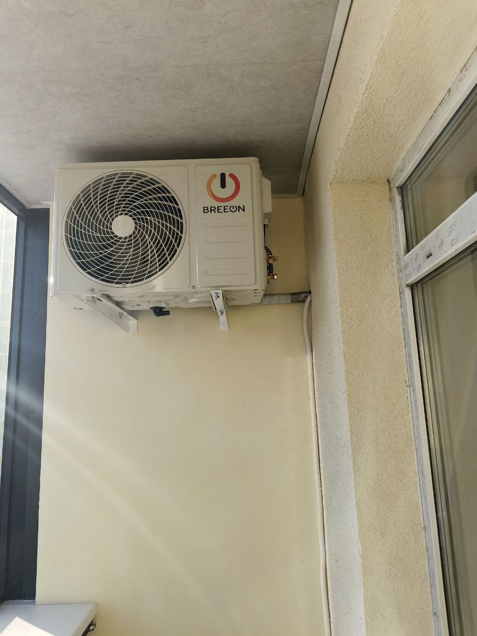• Монтаж внутренних и внешних блоков. Установка проводилась аккуратно, без повреждения новых отделочных материалов.